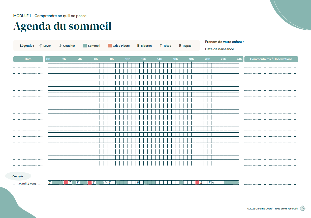 Pour analyser de façon claire et objective le sommeil de votre enfant, ses rythmes, ses horaires de siestes, de repas, le nombre de réveils nocturnes, la quantité de sommeil sur 24h, etc...